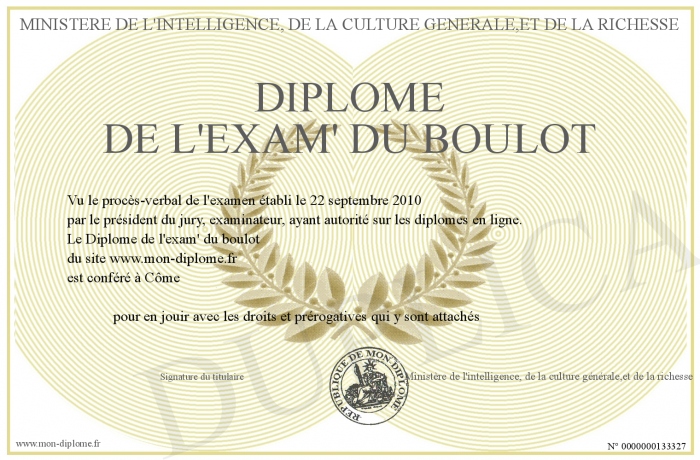 Envoyez par email votre Diplôme de l'exam' du boulot personalisé