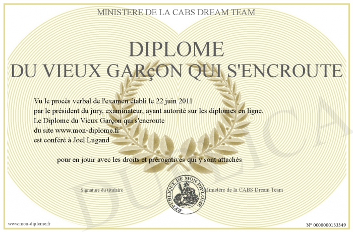 Envoyez par email votre Diplôme du Vieux Garçon qui s'encroute personalisé