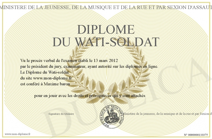 Envoyez par email votre Diplôme du Wati-soldat personalisé
