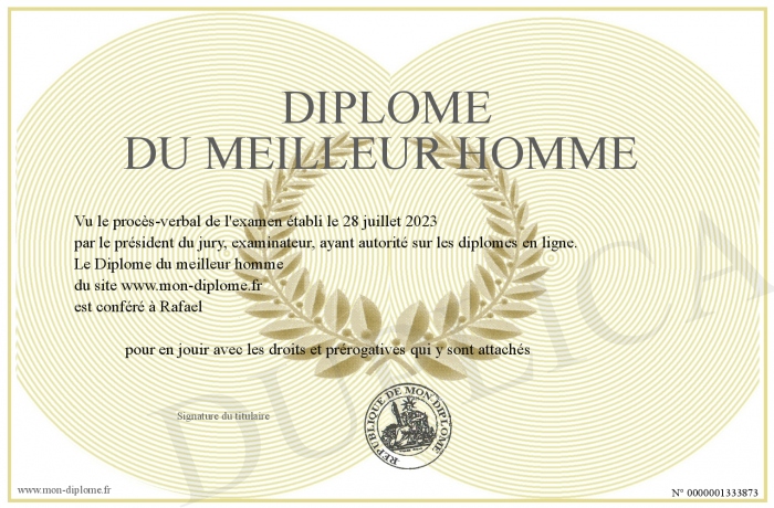 Envoyez par email votre Diplôme du meilleur homme personalisé