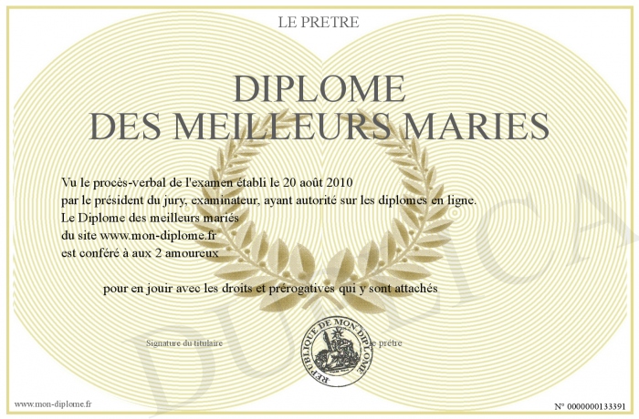 Envoyez par email votre Diplôme des meilleurs mariés personalisé