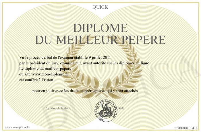Envoyez par email votre diplome du meilleur pépère personalisé