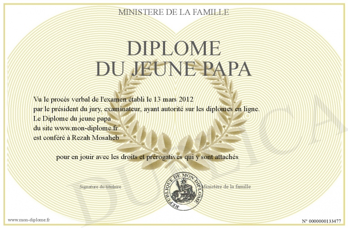 Envoyez par email votre Diplôme du jeune papa personalisé