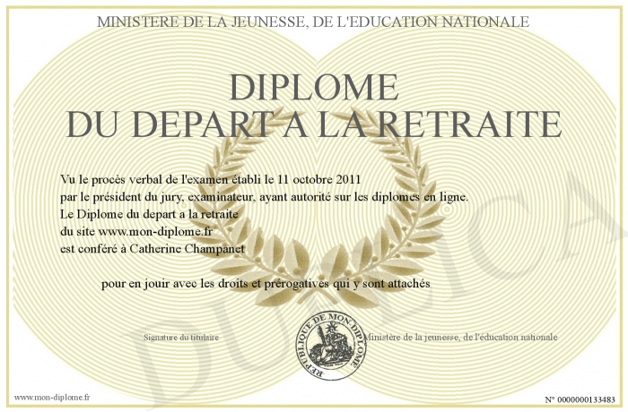 Envoyez par email votre Diplôme du depart a la retraite personalisé