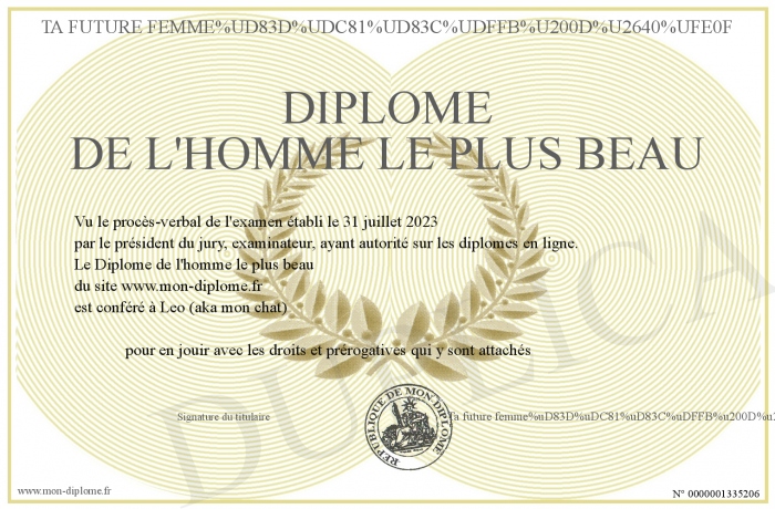 Envoyez par email votre Diplôme de l'homme le plus beau personalisé