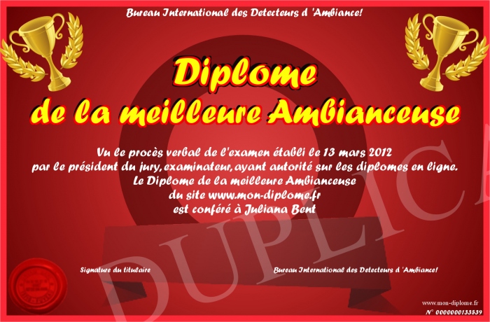 Envoyez par email votre Diplôme de la meilleure Ambianceuse personalisé