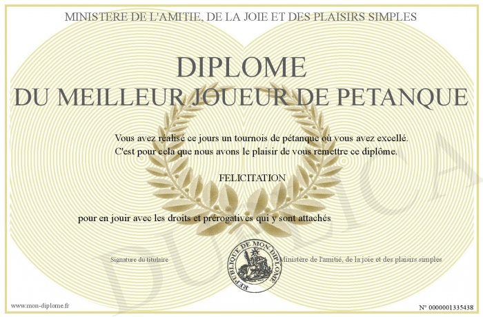 Envoyez par email votre Diplome du meilleur joueur de pétanque personalisé