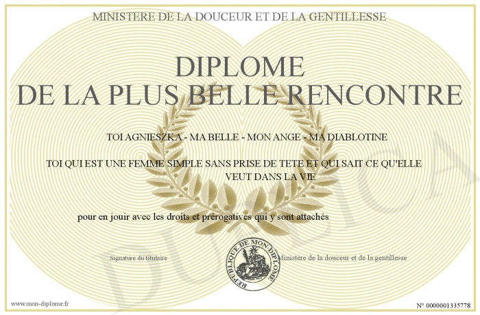 Envoyez par email votre Diplôme de la plus belle rencontre personalisé