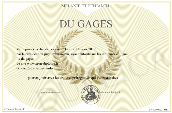 Envoyez par email votre du gages personalisé