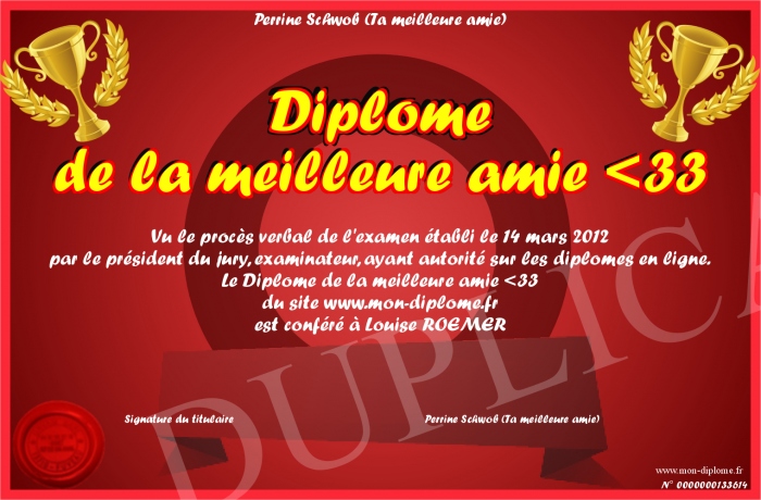 Envoyez par email votre Diplôme de la meilleure amie -33 personalisé