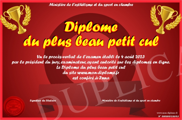 Envoyez par email votre Diplôme du plus beau petit cul personalisé