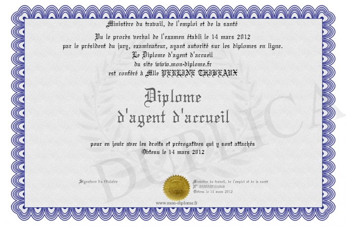 Envoyez par email votre Diplome d'agent d'accueil personalisé