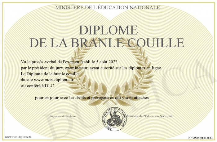 Envoyez par email votre Diplôme de la branle couille personalisé