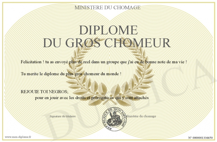 Envoyez par email votre Diplôme du gros chomeur personalisé
