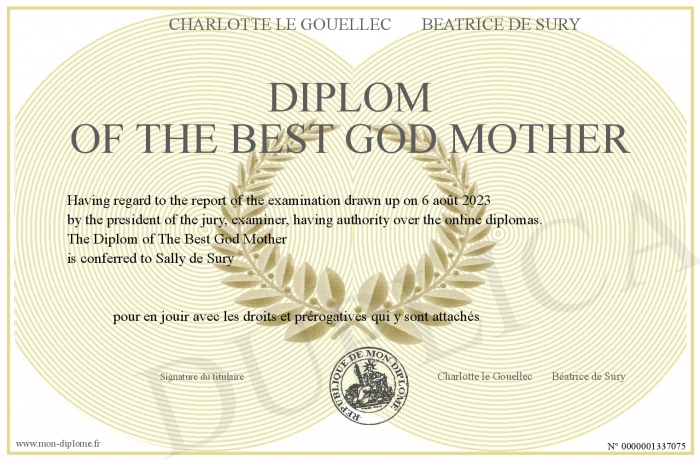 Envoyez par email votre Diplom of The Best God Mother personalisé