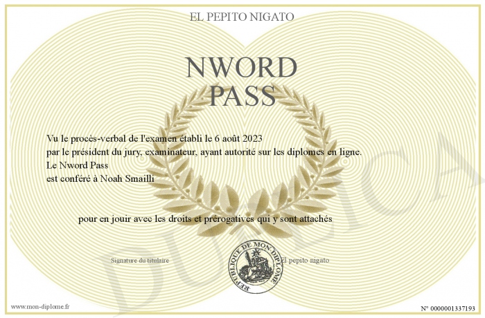 Envoyez par email votre Nword Pass personalisé
