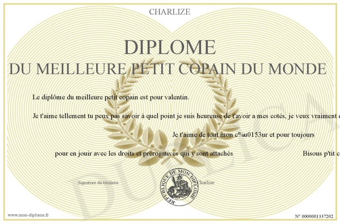 Envoyez par email votre diplôme du meilleure petit copain du monde personalisé