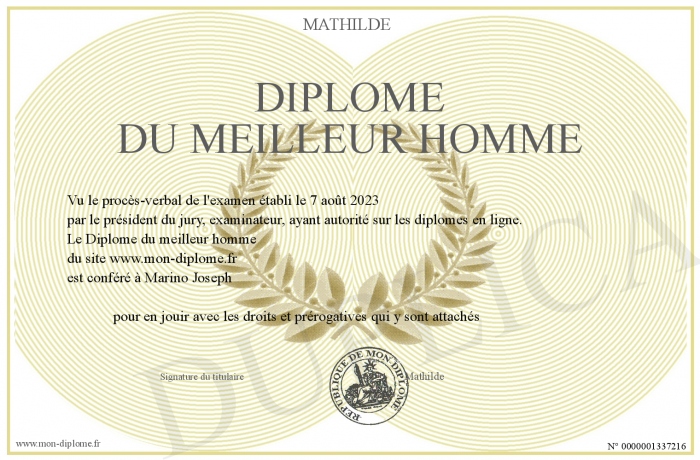 Envoyez par email votre Diplôme du meilleur homme personalisé