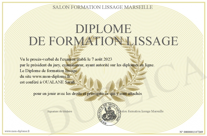 Envoyez par email votre Diplôme de formation lissage personalisé
