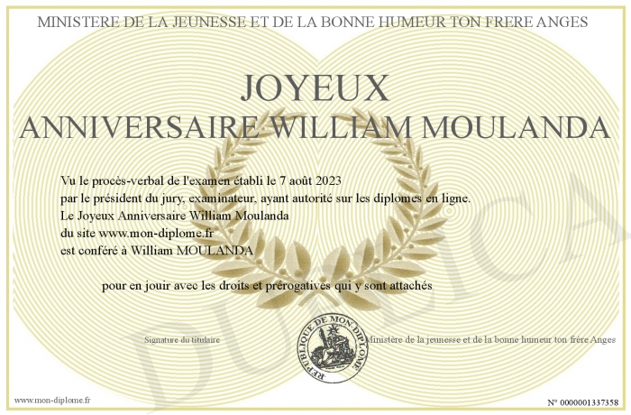 Envoyez par email votre Joyeux Anniversaire William Moulanda personalisé