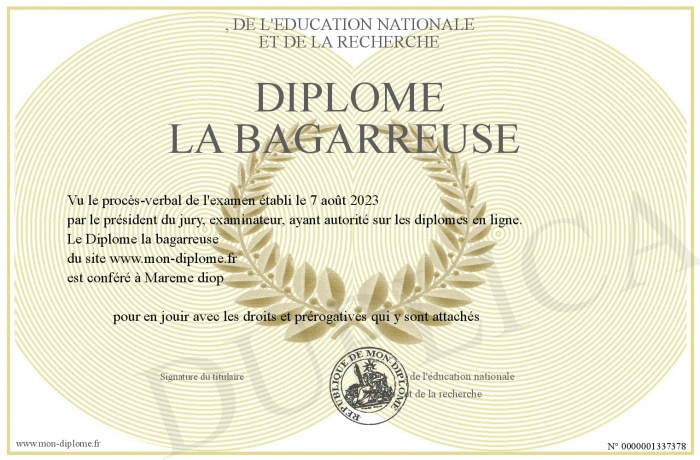 Envoyez par email votre Diplôme la bagarreuse personalisé