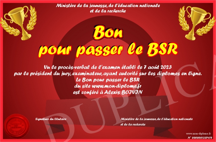 Envoyez par email votre Bon pour passer le BSR personalisé