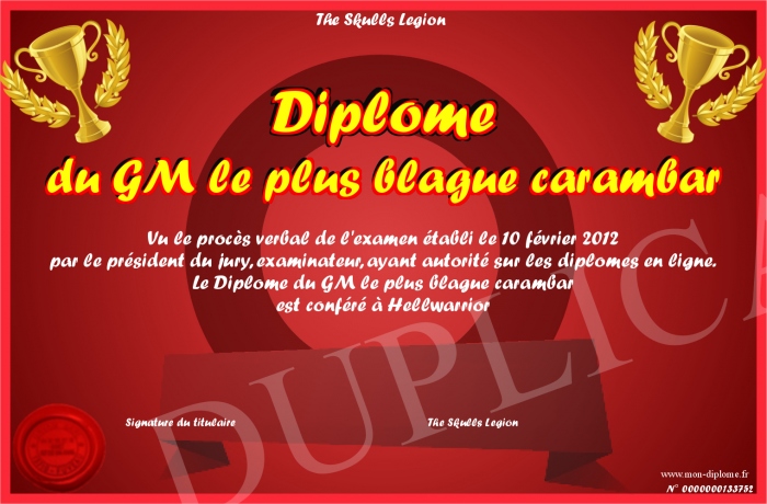 Envoyez par email votre Diplome du GM le plus blague carambar personalisé