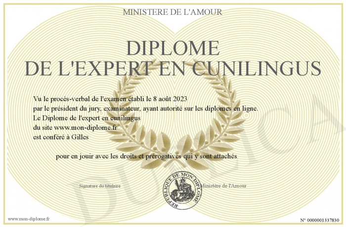Envoyez par email votre Diplôme de l'expert en cunilingus personalisé