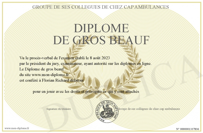Envoyez par email votre Diplôme de gros beauf personalisé