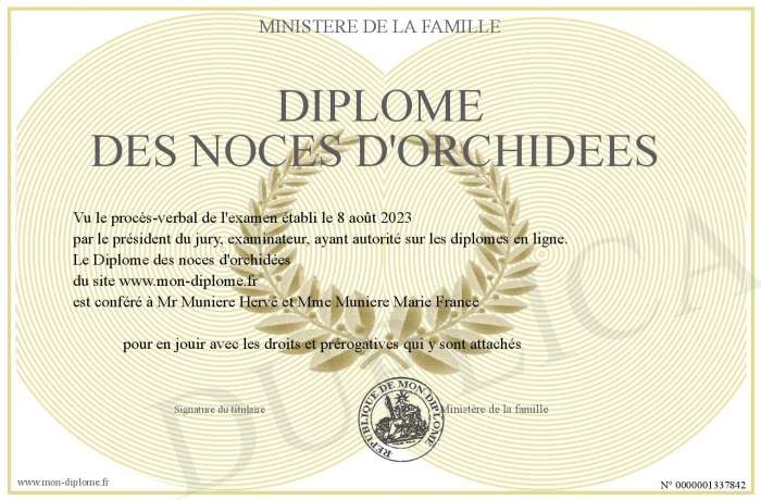 Envoyez par email votre Diplôme des noces d'orchidées personalisé