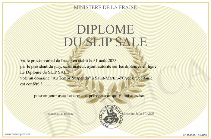 Envoyez par email votre Diplôme du SLIP SALE personalisé