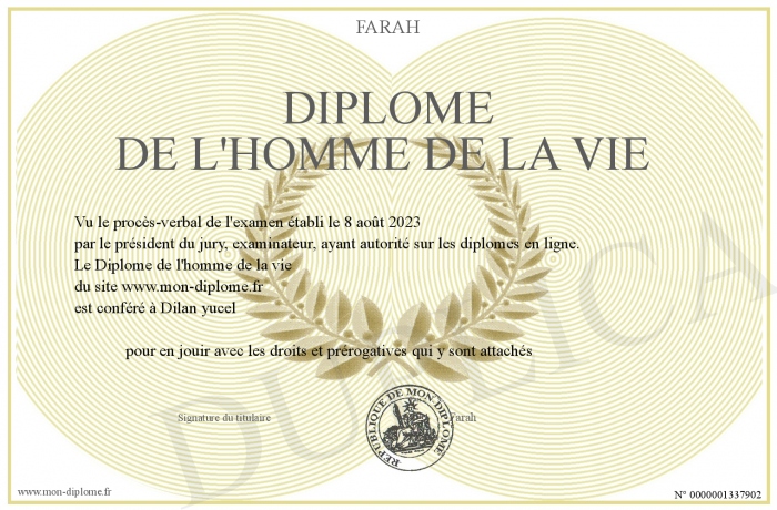 Envoyez par email votre Diplôme de l'homme de la vie personalisé