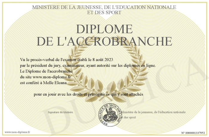 Envoyez par email votre Diplôme de l'accrobranche personalisé