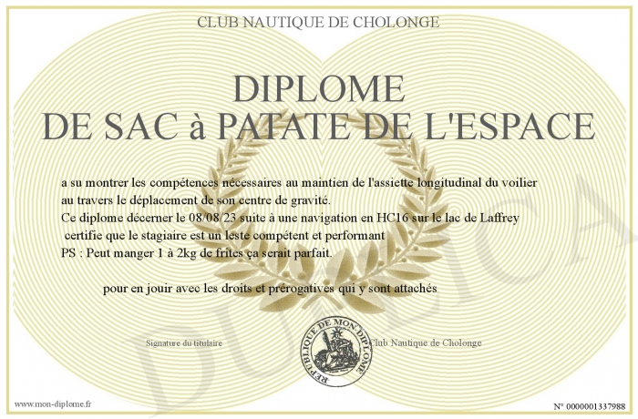Envoyez par email votre Diplome de sac à patate de l'espace personalisé