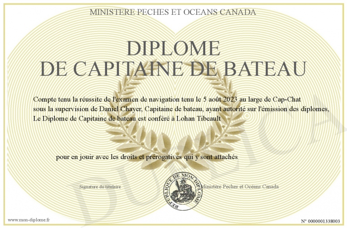 Envoyez par email votre Diplôme de Capitaine de bateau personalisé