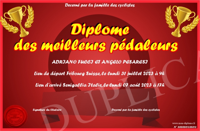 Envoyez par email votre Diplôme des meilleurs pédaleurs personalisé