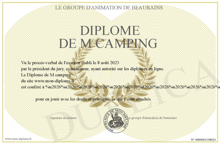 Envoyez par email votre Diplôme de M camping personalisé