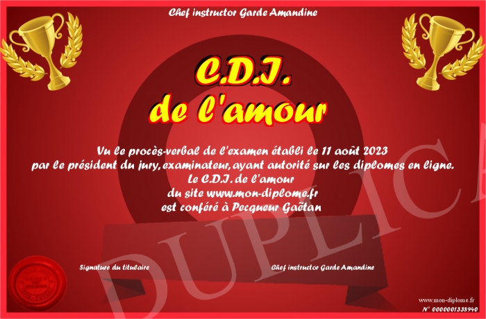 Envoyez par email votre C.D.I. de l'amour personalisé