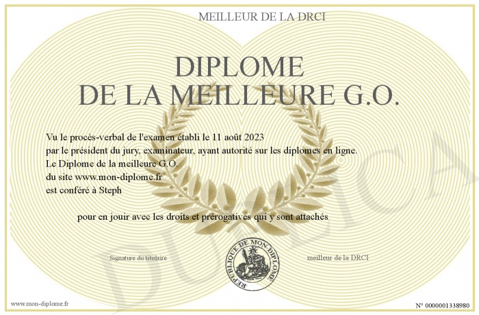 Envoyez par email votre Diplôme de la meilleure G.O. personalisé