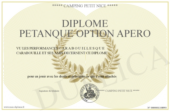 Envoyez par email votre Diplôme petanque option apero personalisé