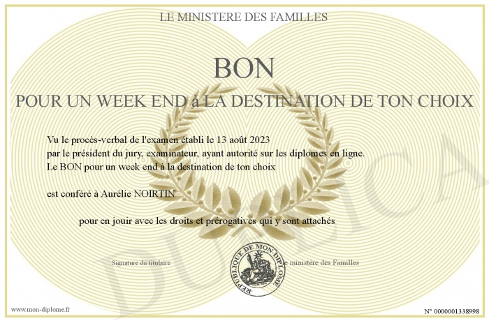 Envoyez par email votre BON pour un week end à la destination de ton choix personalisé