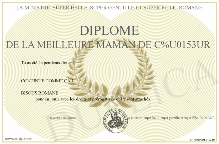 Envoyez par email votre Diplôme de la meilleure maman de coeur personalisé