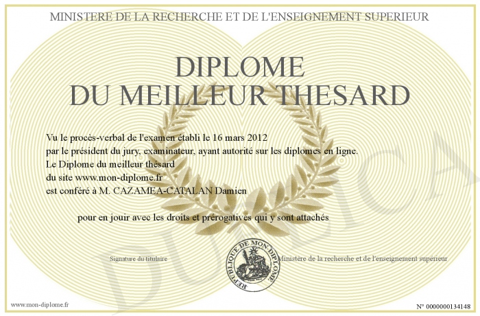 Envoyez par email votre Diplôme du meilleur thésard personalisé