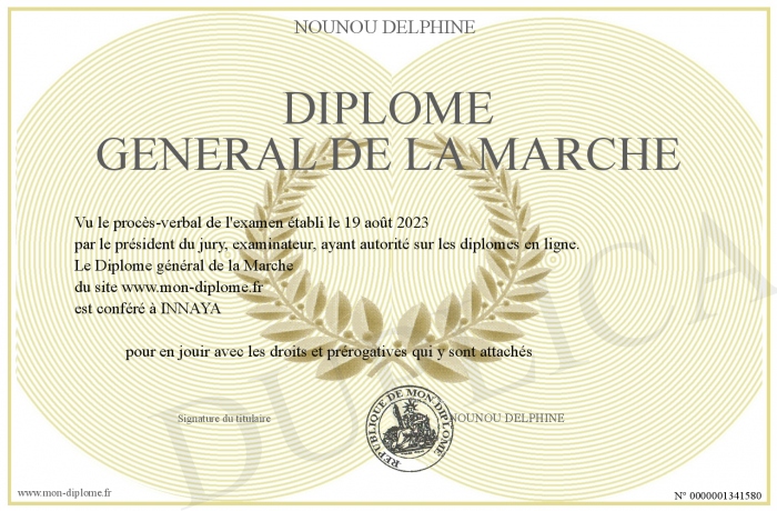 Envoyez par email votre Diplôme général de la Marche personalisé