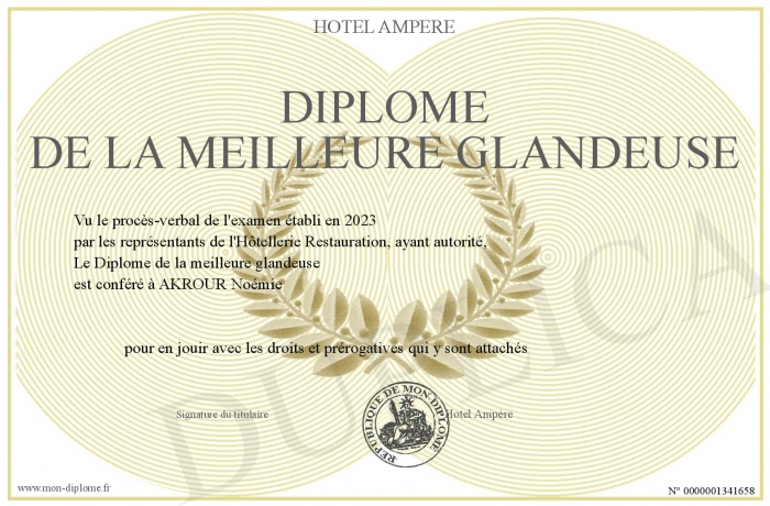 Envoyez par email votre Diplôme de la meilleure glandeuse personalisé