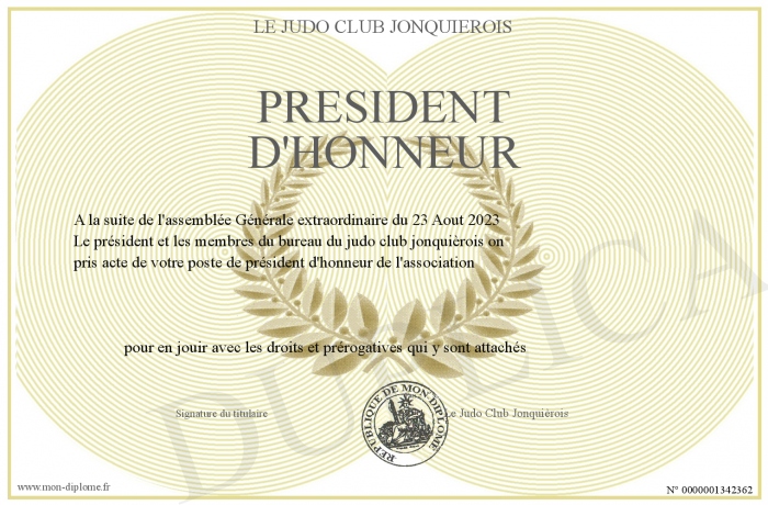Envoyez par email votre PRESIDENT D'HONNEUR personalisé