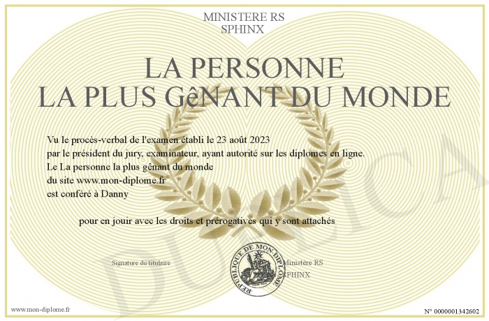 Envoyez par email votre La personne la plus gênant du monde personalisé