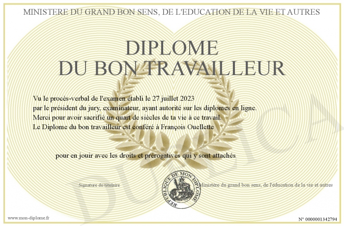 Envoyez par email votre Diplôme du bon travailleur personalisé