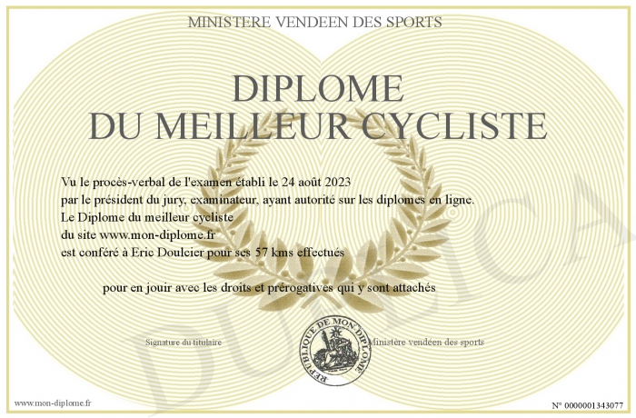 Envoyez par email votre Diplôme du meilleur cycliste personalisé
