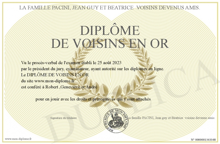 Envoyez par email votre DIPLÔME DE VOISINS EN OR personalisé